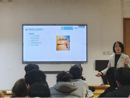 在面试礼仪与技巧环节,范永红从企业需求、考察重点、面试流程切入,详细讲解面试前准备、着装礼仪、状态调整、到场规范等细节,针对自我介绍、互动应答、难题应对、薪资沟通、面试复盘等实操场景给出具体方法。同时围绕企业青睐的专业能力、学习能力、敬业精神、团队协作、抗压素质等核心素养,引导学生树立正确就业观,提前规划求职路径,全面提升软实力与综合竞争力。
