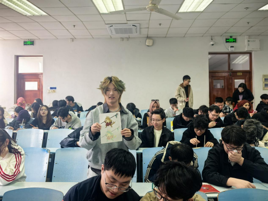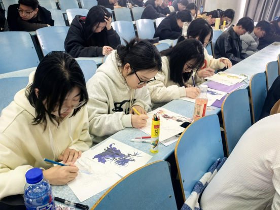 活动的亮点之一是“东方神话的现代演绎绘画”环节。参与者们以缤纷绚烂的色彩为载体,将自己对东方神话的独特理解与现代创意的火花融入画作之中。红色象征着哪吒的炽热勇气与重生力量,蓝色寓意着龙宫的神秘与智慧。同学们或描绘哪吒脚踏风火轮的英勇身姿,或勾勒龙宫中奇幻瑰丽的景象,或展现仙山琼阁间仙人们飘逸出尘的风采。大家相互交流创作心得,分享对神话故事的感悟,仿佛共同开启了一场穿越时空的东方神话之旅。