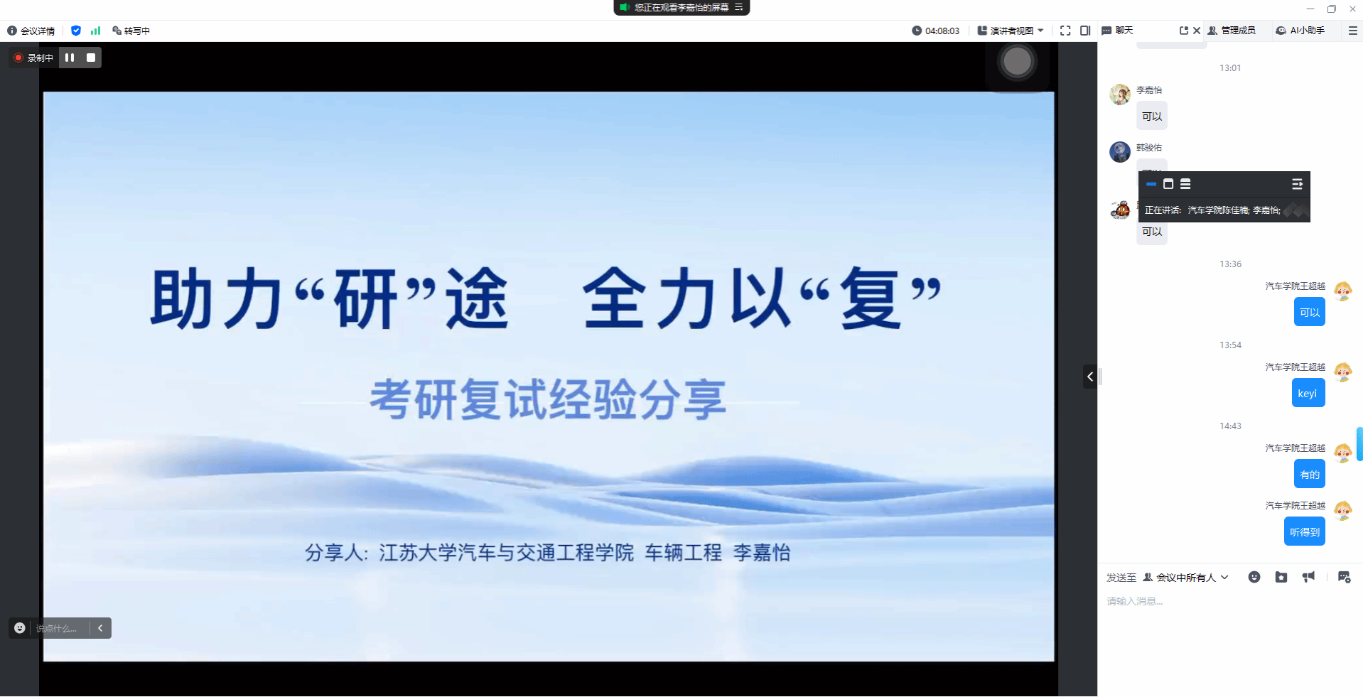 直播过程中,同学们积极参与互动,踊跃提问,学长学姐们耐心解答,现场气氛热烈。同学们纷纷表示,通过本次分享会,对考研复试有了更清晰的认识,也更有信心迎接挑战。