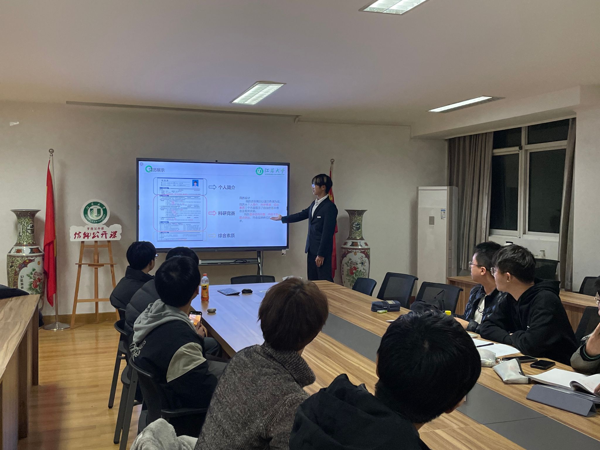 复赛设主题陈述、现场问答两个环节。每位参赛选手以自信的姿态登上演讲台,以流畅的言辞和专业态度展现了一场简历视觉与才华的盛宴,选手们凭借深厚的专业素养和丰富的实习经验,多方位展现各自的才华与潜力。