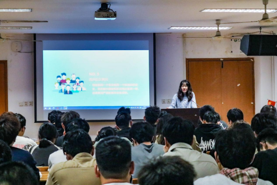 吴甜老师首先阐明了简历在求职过程中的重要性。随后,她从版面设计、框架布局到基本信息、求职意向、学业内容、工作经历、奖惩情况、自我评价等具体内容向大家详细地讲解如何制作出一份精美的简历。此外,她还结合具体实例,阐述了在简历制作过程中常见的问题,帮助同学们走出误区。她强调,一是要学会“扬长避短”,突出自己的优势。二是简历设计要简洁大方,选用实用清楚的模板。三是简历内容要注意表述方式,重点突出,比如使用具体数字来量化自己的成就。