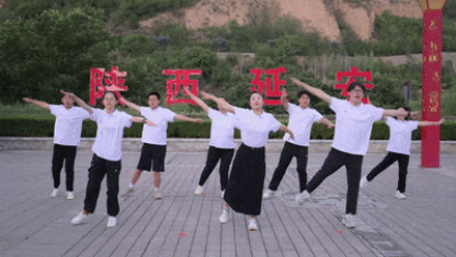实践团成员在冯庄乡、十里铺村、宝塔山下采风创作,完成《新青年》舞蹈快闪,周围的青山绿水与活力的舞蹈相映衬,构成了一幅美丽的乡村画卷。