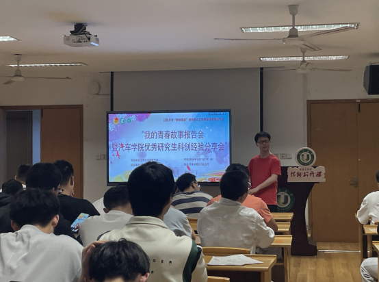 活动的最后,研究生辅导员汪峥嵘老师作总结发言,他指出,两位学生嘉宾讲述的青春故事非常真实、非常感动,令人产生共鸣。希望每一位汽院学子以他们为榜样,努力找到自己成长成才的方向,对标找差及时修正目标任务,能够潜心学问、励志创新,在创新实践中增长才干,在感恩奋进中学有所成,在江大这个舞台上绽放出绚丽青春。
