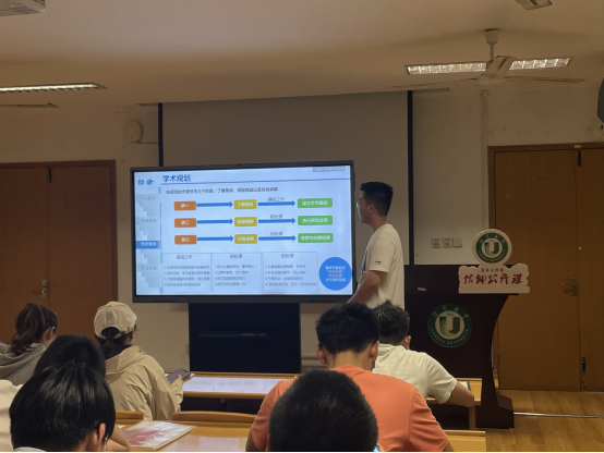 接下来,高鹏同学围绕学术论文、科研竞赛、专利撰写以及研究生生涯规划等方面进行经验分享。高鹏同学强调了在整个研究生生涯中,每一步都需要踏实地前行,保持良好的心态来应对生活的各种挑战。在建立学术基础、执行研究过程、以及修撰与完善结果的过程中,坚持脚踏实地的态度至关重要。同时,他提到,在研究生生活中需要平衡好科研和学习的节奏,以便更好地完成自己的研究计划。