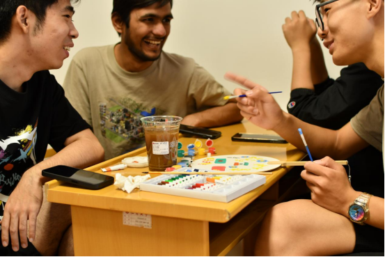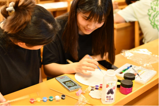 活动中,主持人鼓励大家发挥奇思妙想,用一花、一叶、一妙手创作出兼具观赏性和实用性的团扇作品,传承中华非遗之美。同学们充分发挥自己的创意和想象力,将各种元素巧妙地融合在一起,在素白的扇面上,利用各式各样的花朵和叶子,辅以精美的装饰品,勾勒出心中意境,让原本平淡无奇的扇面变得缤纷多彩,创造出了一幅幅充满生命力与故事性的“艺术品”。在制作过程中,同学们近距离地体验到了手工创作的独特魅力和乐趣。