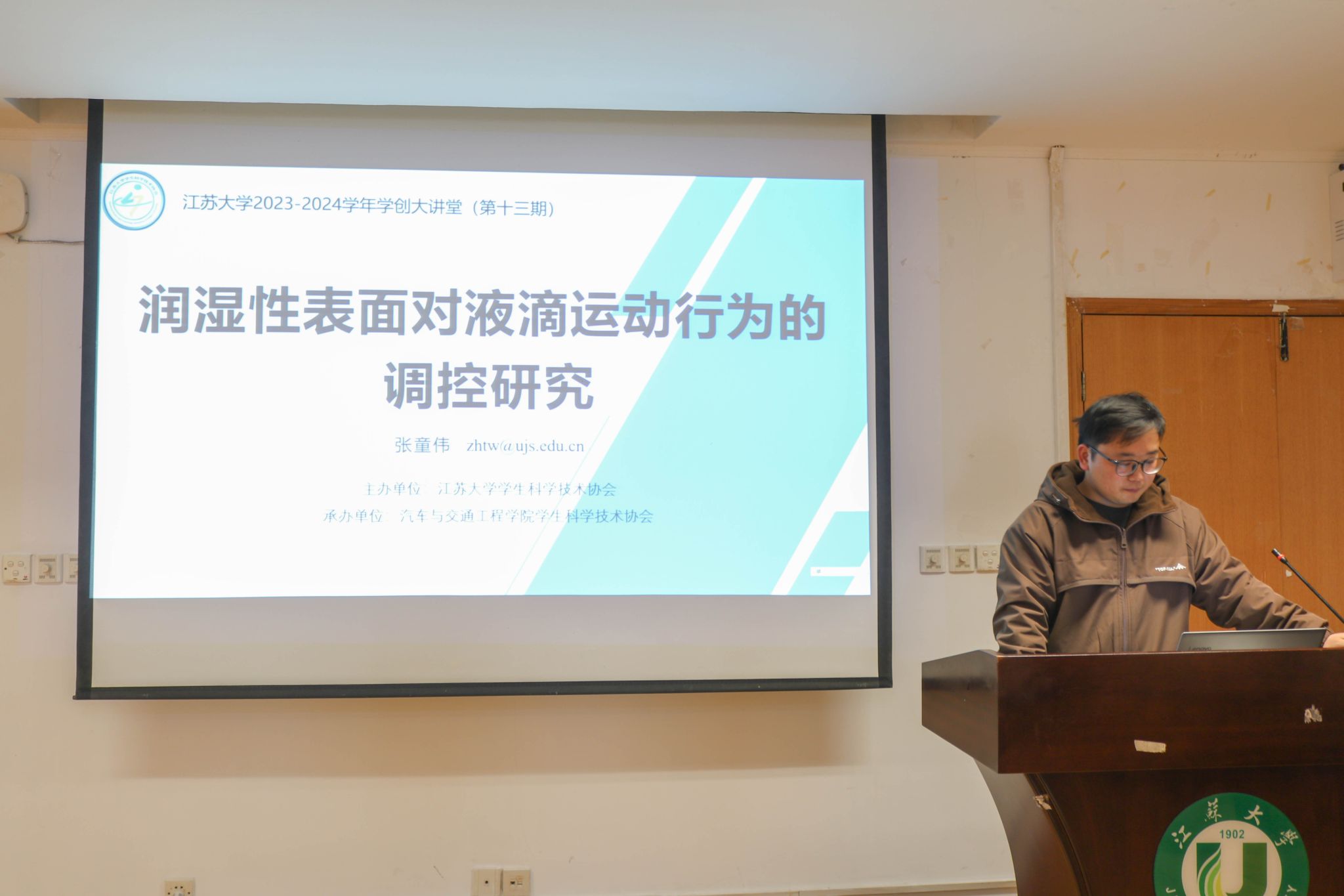 11月29日,365英国上市在311报告厅举办“润湿性表面对液滴运动行为的调控研究”学创大讲堂,本次学创大讲堂由动力工程系张童伟老师主讲,共100余人参加。