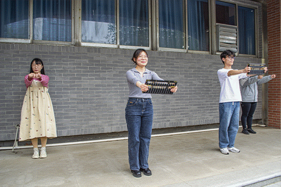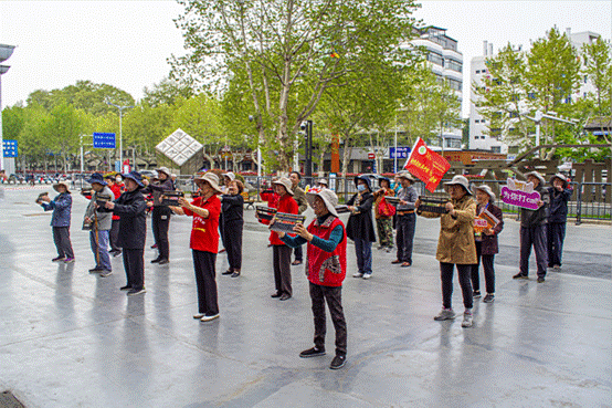 活动开始后,老人们在广场分别排开,志愿者带着大家做算盘操。志愿者们边讲解动作边示范,将每一步都拆解,详细展开解释,耐心指导老人,确保每一位老人都能跟上老师的节奏。