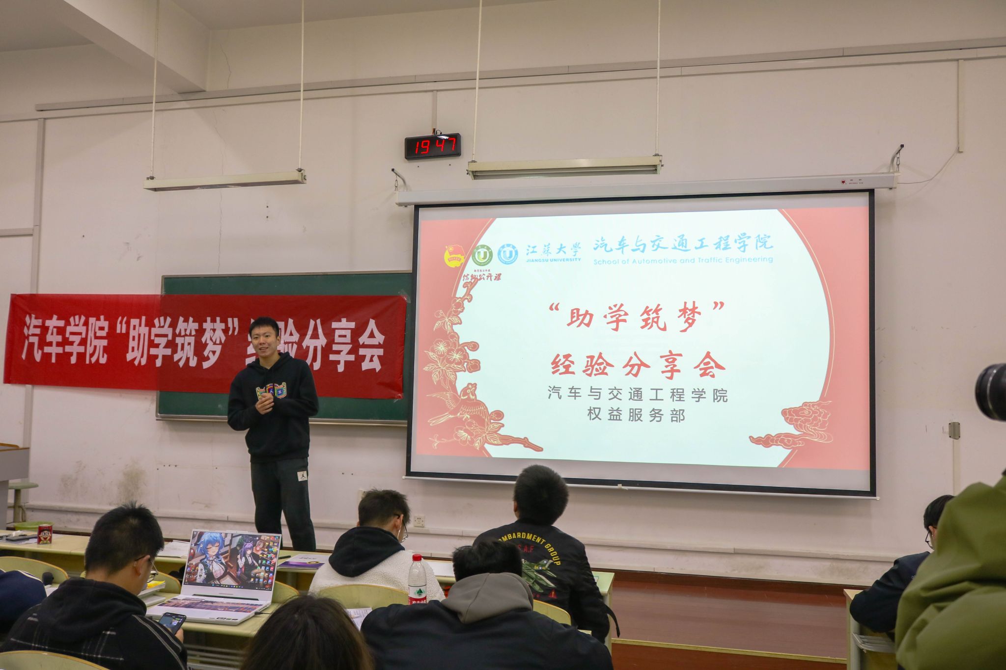 为进一步创新朋辈教育形式,充分发挥优秀学生榜样示范引领作用,引导大一学生明确奋斗目标激发学习动力,有的放矢做好学业规划,11月15日,365英国上市在京江楼2107、2108教室举办“助学筑梦”经验分享会。车辆2002班徐乐和车辆(卓越)2101班高嘉兴同学受邀成为主讲人,120余名新生参加。