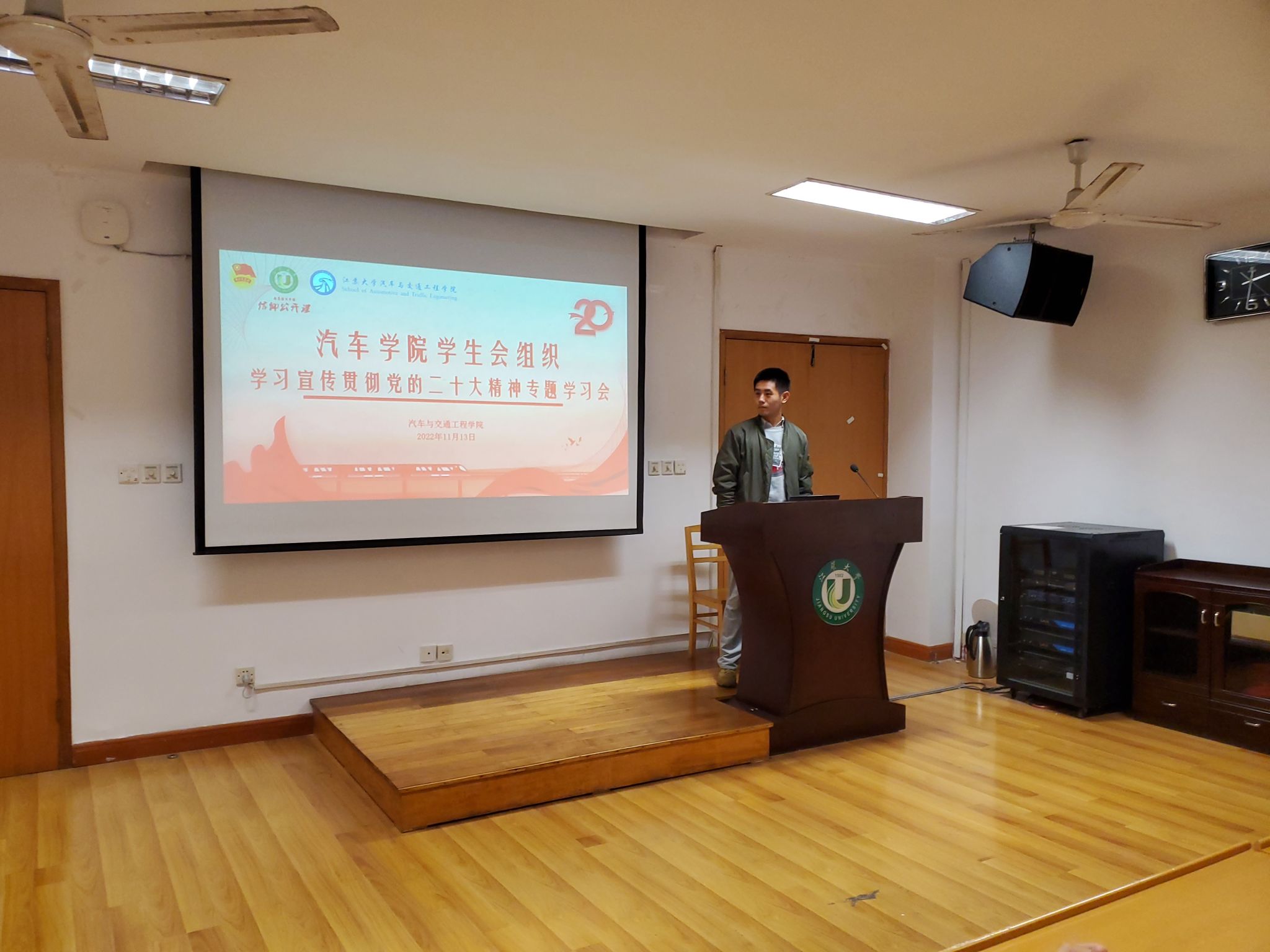 会上,行政办公部负责人黄翌杰同学以《学习贯彻党的二十大精神 做新时代的奋斗者》为主题,从充分认识学习宣传贯彻党的二十大精神重要意义、党的二十大报告主要内容和以实际行动学习贯彻党的二十大精神三个方面,引导学生会组织工作人员学习领会党的二十大精神。