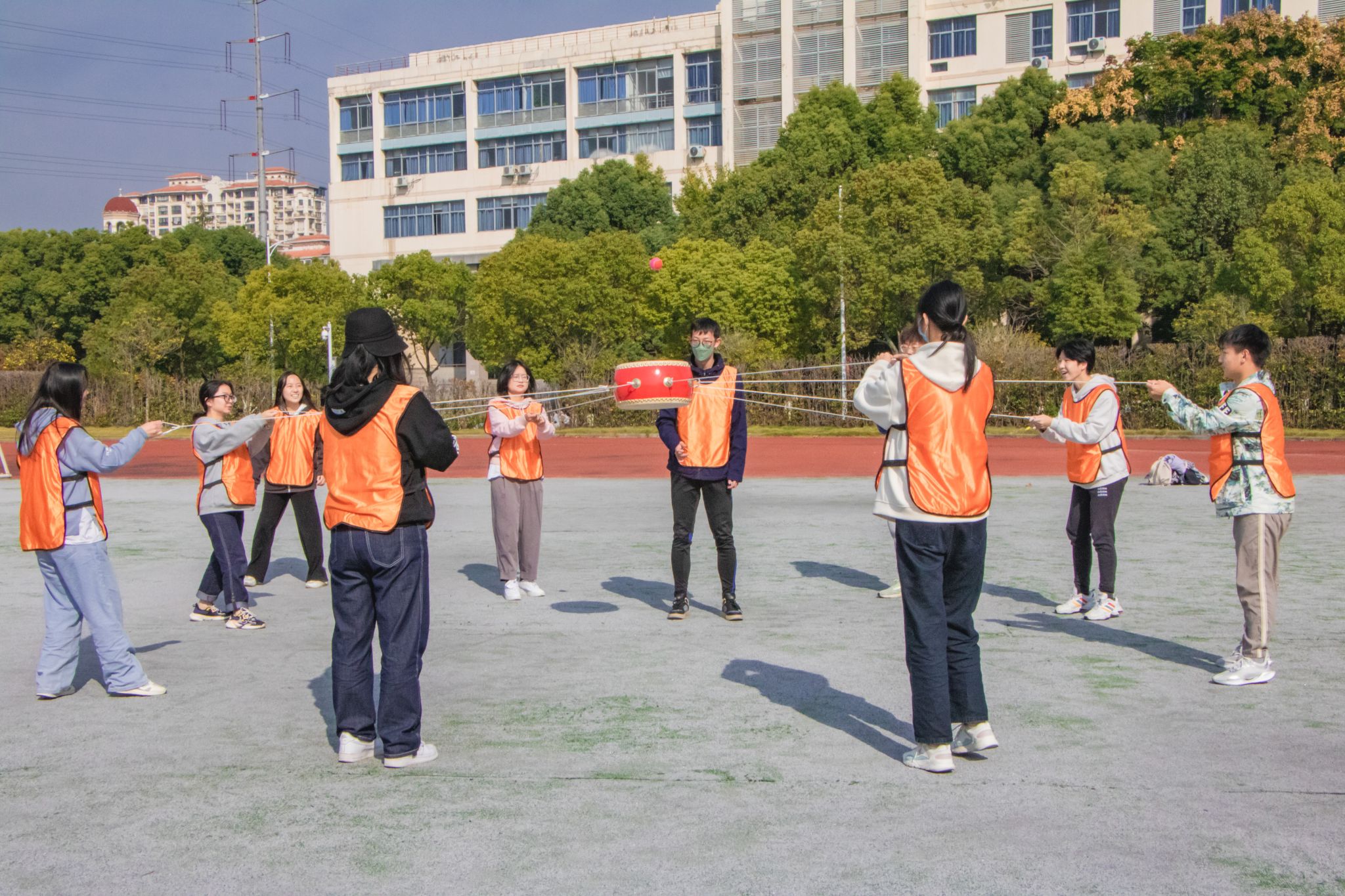 本次素质拓展活动以小组为单位进行,设置了5个闯关小游戏。首先,陈佳楠老师致辞,她表示,团支部是团的基础组织,是团组织开展工作的基本单元,是团的全部工作和战斗力的基础,而团干部们是引导广大团员青年前进的带头人。工作有难度才需要学习,工作重要才更应该加强学习。各支部书记要充分认识新形势下团干部加强学习的重要性和紧迫性,严格要求、加强锻造,通过学理论、学知识、学技能、学业务,不断提高自己的能力素质。紧接着,主持人介绍活动规则和积分要求,志愿者现场示范5个比赛项目,光辉历程——党史卡片排序、齐心协力——跳长绳、一鼓作气——击鼓颠球、手疾眼快——沙包投准和一圈到底——呼啦圈传送。各队伍信心满满,奋勇争先。