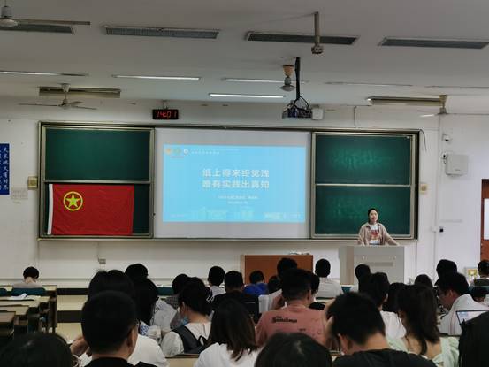 本次团课主题为“社会实践”,共分三个部分进行。首先,陈佳楠老师简要介绍了社会实践的内容和流程。按照时间划分,主要有寒假社会实践和暑期社会实践。按照形式分,主要有“三下乡”社会实践和“返家乡”社会实践两类。接下来,陈老师解读了评价方案,重点介绍了社会实践材料的撰写要求和注意事项。首先是团队实践方案,要求社会实践方案能紧密结合时代主题,充分发挥专业特色和学科特长,要求实践计划具体化、专业化且要有较强的可操作性。然后是社会实践总结,从组织动员、特色做法、实践成效、新闻媒体报道以及学生参与实践情况汇总等方面着手进行总结。最后,陈老师从中暑、毒蛇咬伤、低血糖等突发状况处理入手介绍了社会实践过程中所需注意的安全事项。提醒大家准备好防暑降温的用品,提升应急处置的能力。最后,陈老师作总结发言,对各位团干部提出高要求,鼓励大家大胆想、大胆做,鼓励有创意有意义的活动让大家亲身认真参与其中。让暑期社会实践活动不再是纸面上的任务,不再单调走形式,而是成为吸引大学生们亲身参与,获得成长的生活大课堂。