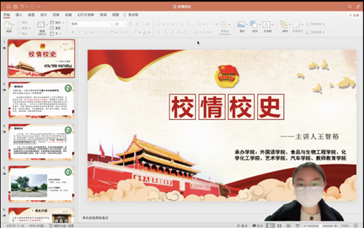 4月3日,由校团委主办,365英国上市、外国语学院、食品与生物工程学院、化学化工学院、艺术学院和教师教育学院承办的第76期团校第3讲“校情校史”主题团课在线上准时开讲,本次团课由校史馆讲解员王智裕主持,外国语学院、食品与生物工程学院、化学化工学院、艺术学院、365英国上市和教师教育学院的各支部委员、部分团学组织干部及干事参加此次讲座。
