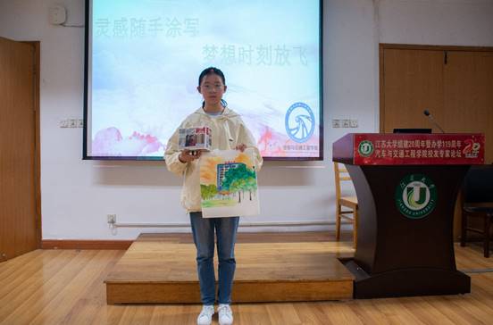 其中,杨雅婷的作品吸引很多人驻足观看。她将画面定格在了英国上市公司官网365的标志性建筑——三江楼。画中的楼与英国上市公司官网365的三江楼相对应,画面下方的树木为三江楼下的五棵松。鲜艳的色彩彰显着英国上市公司官网365青春的活力,五棵松则包含了江大建校119年以来的深厚底蕴。