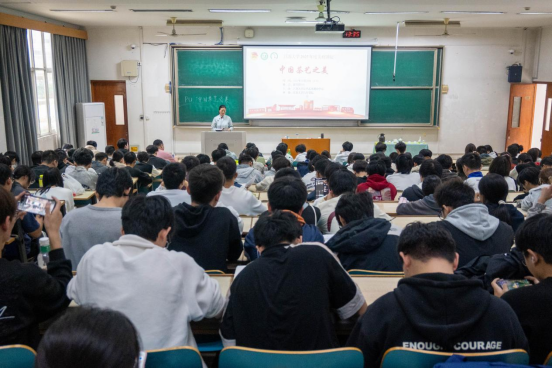 在互动环节,同学们围绕茶叶品鉴、茶艺历史等话题踊跃提问,与主讲人进行了深入交流。讲座结束后,师生们意犹未尽,纷纷上前近距离观赏精美茶器,品鉴馥郁茶香,在亲身实践中深化了对茶艺之美的理解。
